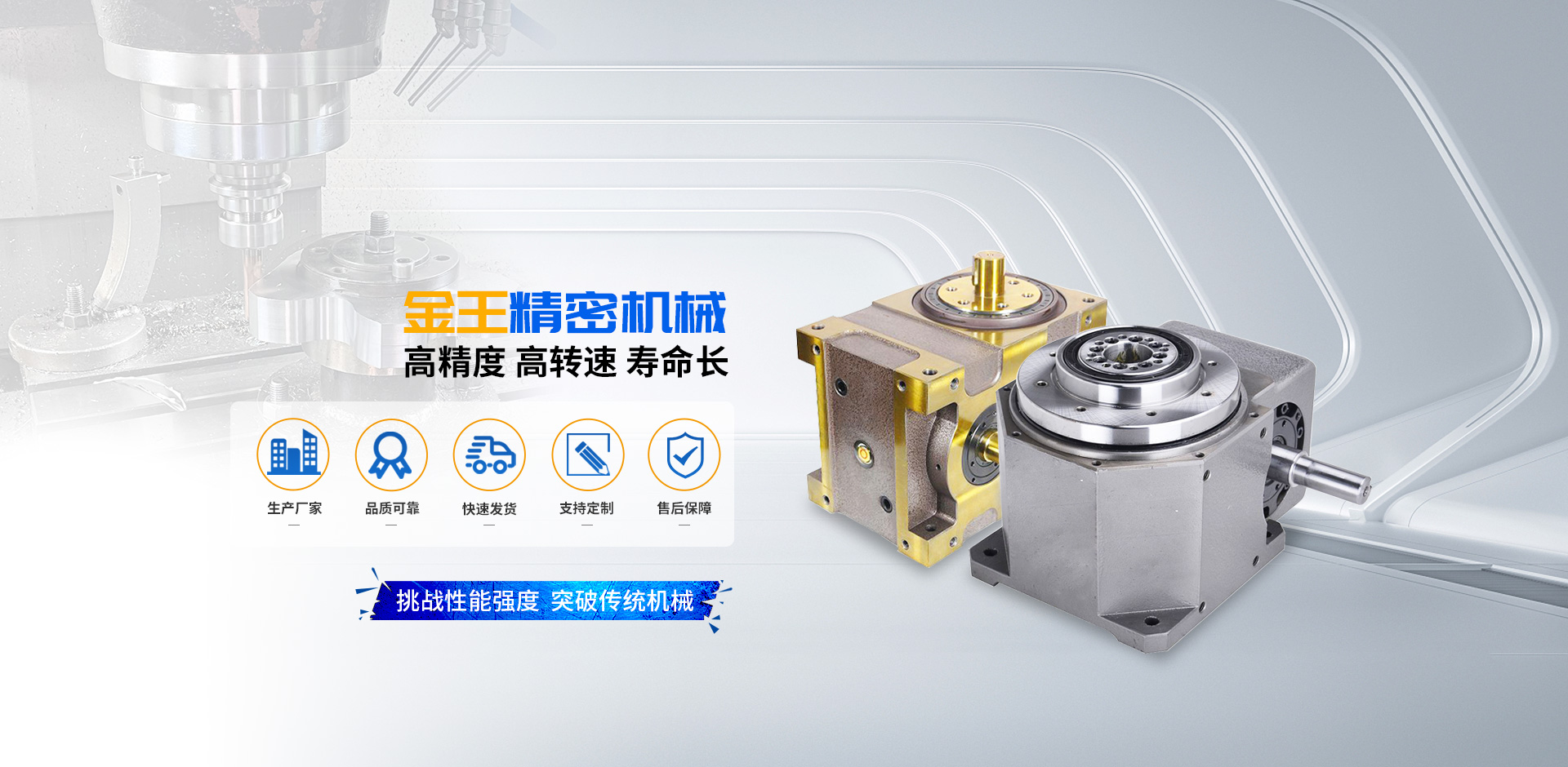 諸城市金王精密機械有限公司是一家精密機械制造企業.公司同山東大學機械學院一起共同開發生產高品質凸輪,凸輪分割器系列產品.目前已擁有D,P,Y三大系列定型標準產品.有分割器、凸輪分割器、法蘭型分割器、心軸型分割器、平臺型分割器、弧面凸輪分割器、分度器、法蘭型分度器、凸輪分度器、平行分度器、激光雕刻機專用分割器,BT圓柱凸輪分割器、重負載凸輪分割器等。